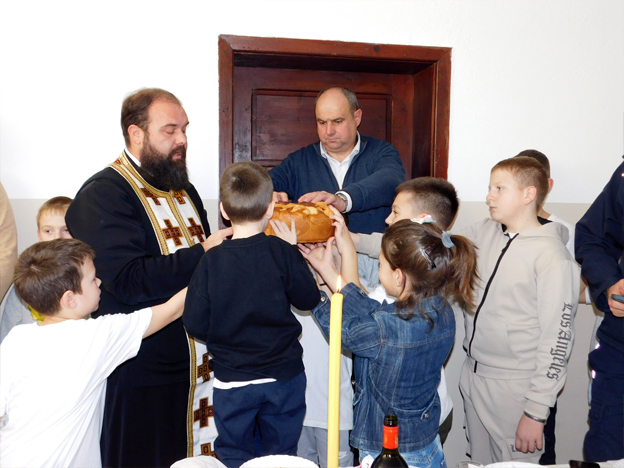 Ђаци су извели своје брижно припремљене културне програме, а гости са пажњом и одушевљењем пратили. Све се завршило освећењем и ломљењем славског колача и славским ручком за све присутне.